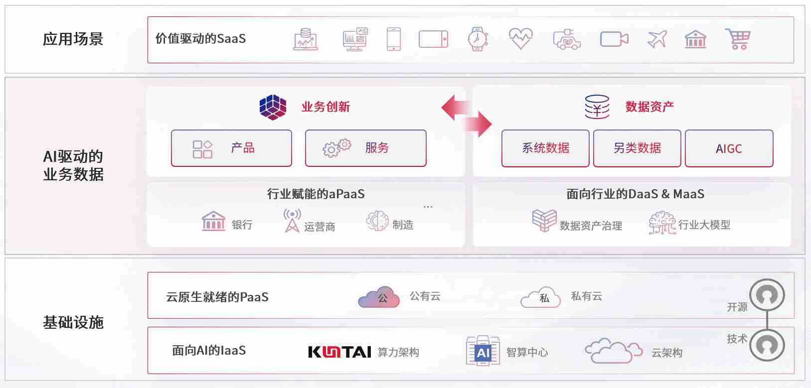 数字时代,,,,围绕企业数字化转型的关键要素,,,摩根娱乐数码开创性的提出数云融合战略和技术体系框架,,,,着力在云原生、、、数字原生、、AI原生和信创产业上架构产品和服务能力,,,,为处在不同数字化转型阶段的快消零售、、、、汽车、、金融、、、、医疗、、、政企、、教育、、、、运营商等行业客户提供泛在的敏捷IT能力和融合的数据驱动能力,,构建跨界融合创新的数字业务场景和新业务模式,,助力企业级客户建立面向未来的核心能力和竞争优势,,,全面推动社会的数字化、、、智能化转型升级。。