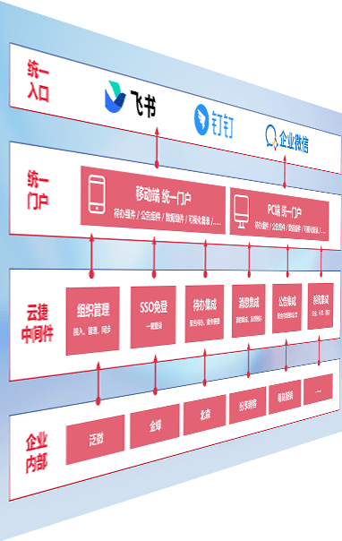对协作平台提供支持服务,,,支持企业应用与协作平台对接,,,,包含组织同步、、、消息集成、、、待办集成等。。。。支持目前主流的协作平台:钉钉、、企微和飞书。。